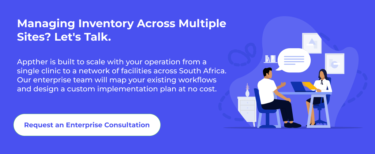 Regulatory compliance adds further complexity. SAHPRA requires strict tracking of medicines and medical devices. Facilities that cannot produce accurate stock records face serious regulatory risk.